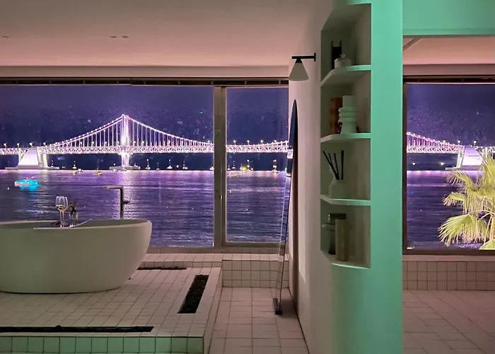 Die Ferienwohnung Playa Busan zeichnet sich durch eine strandnahe Lage in ungefähr 5 Gehminuten Entfernung vom Strand von Gwangalli. Das Apartment bietet ein Swimmingpool mit einem Wellnessbereich.